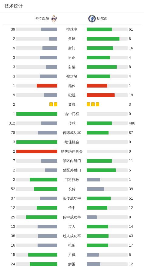 第39分钟,哈托手球送点,扬科维奇主罚命中,卡拉巴赫2-1切尔西